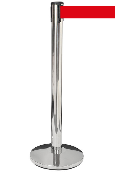 1 Stück Ständer in silber für Leitsystem. Aus Stahl - Höhe 91 cm. Mit schwerem Fuß Ø 32 cm. Lieferbar mit 3 Meter Gurt