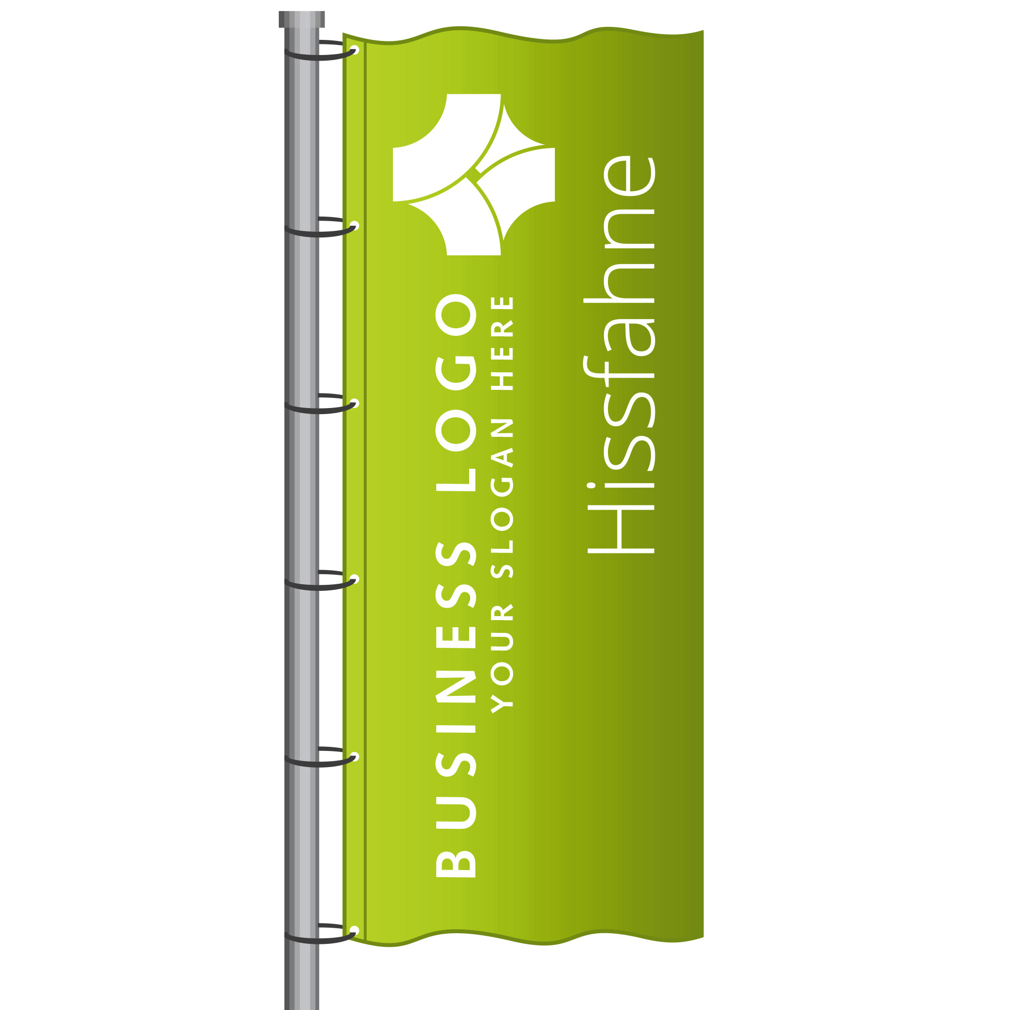 Hissfahnen werden dabei am Fahnenmasten direkt befestigt und sind einfach auszubringen bzw. wieder einzuholen.